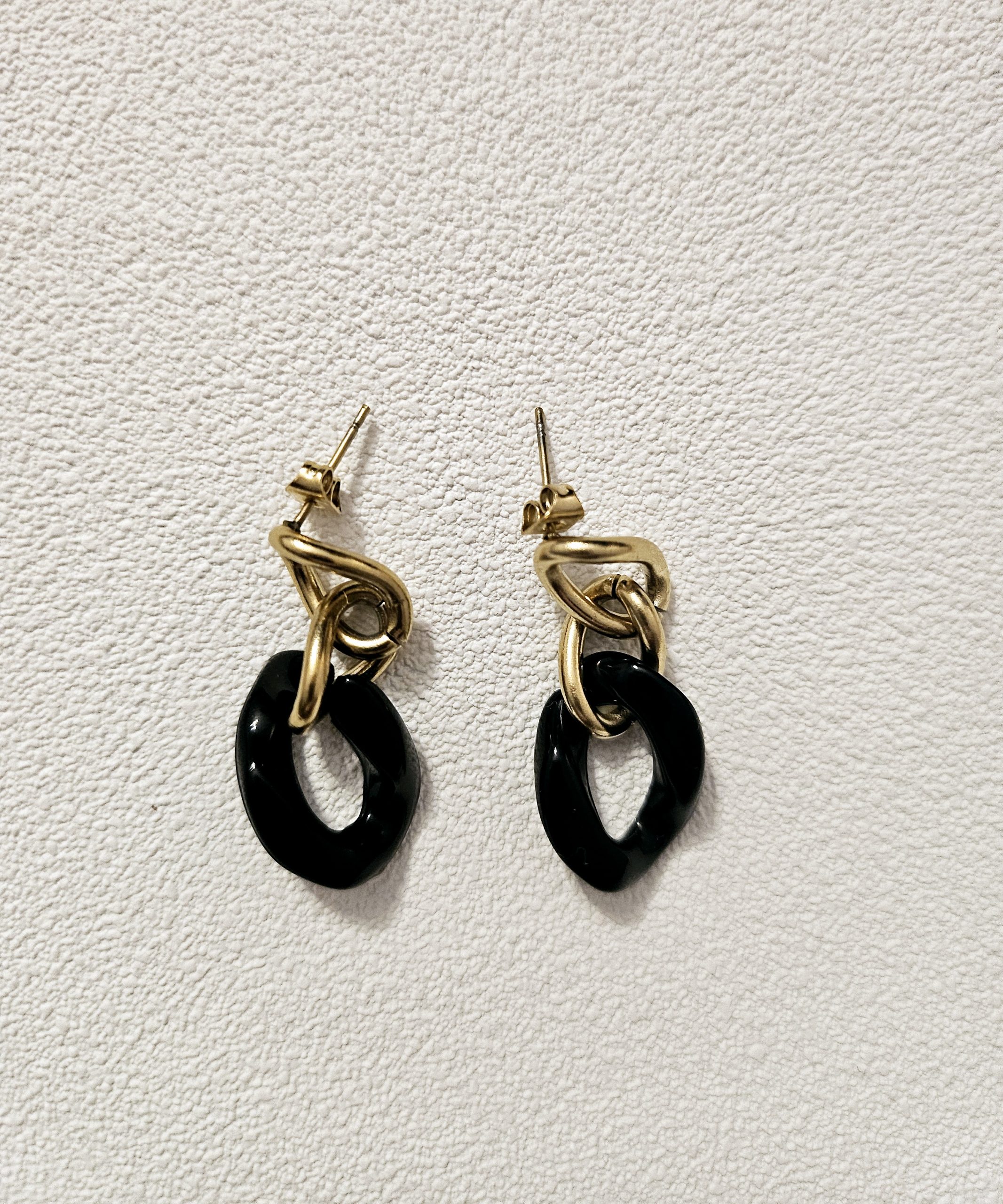 Composées de deux petits maillons dorés et d’un maillon noir en acétate