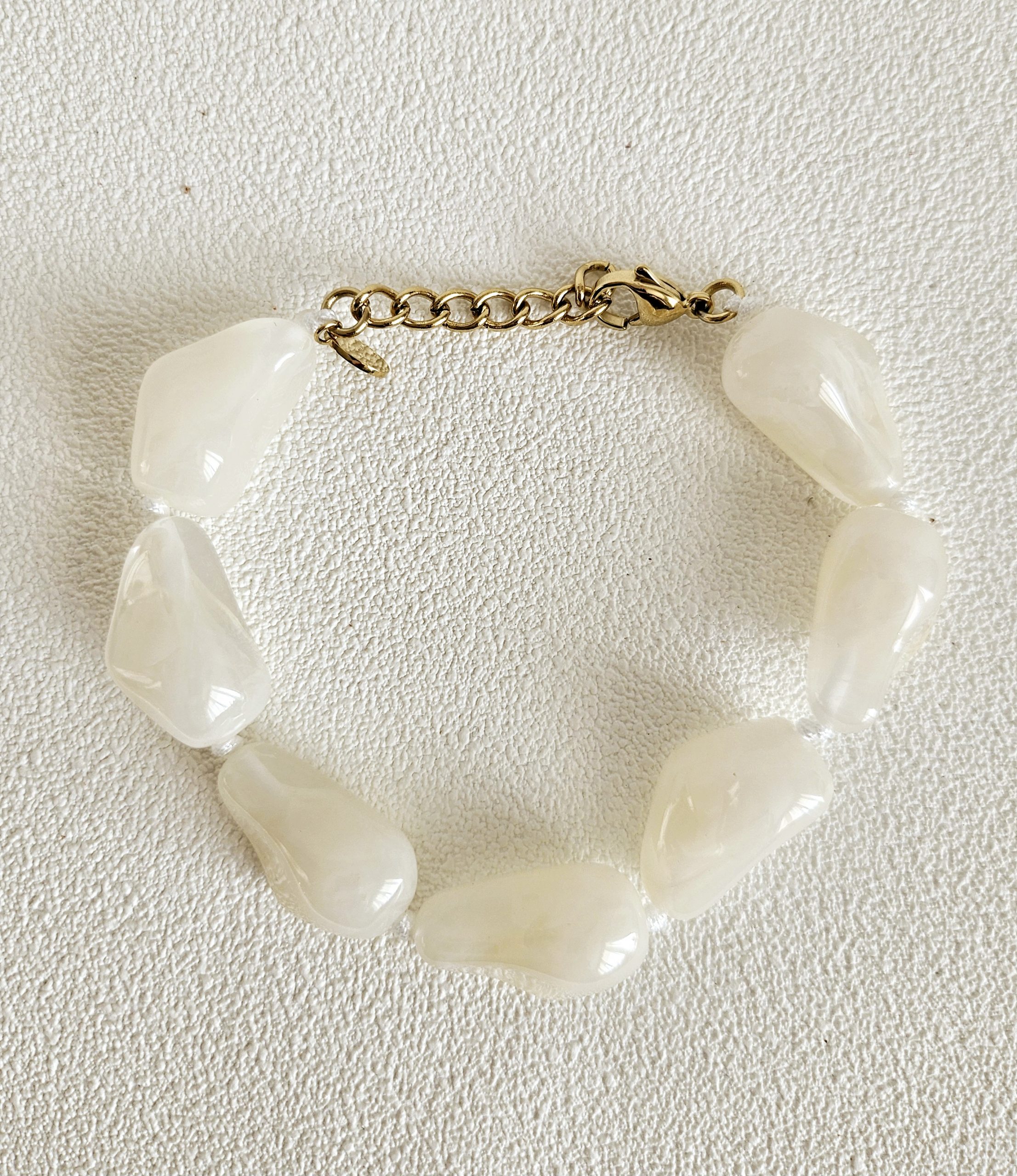 Le bracelet BEIGE séduit par son association harmonieuse de perles en acétate et de coton résistant