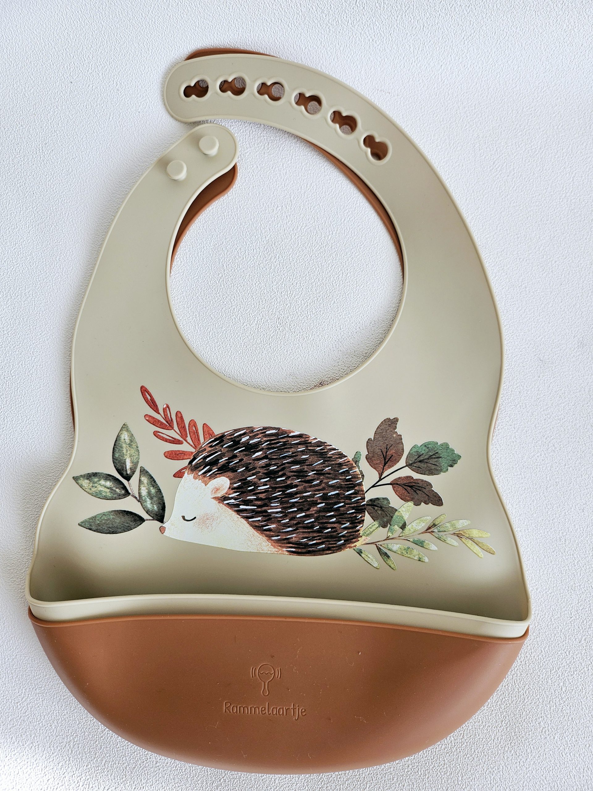 • 2 bavoirs ajustables (1 coloris rouille, 1 motif hérisson)