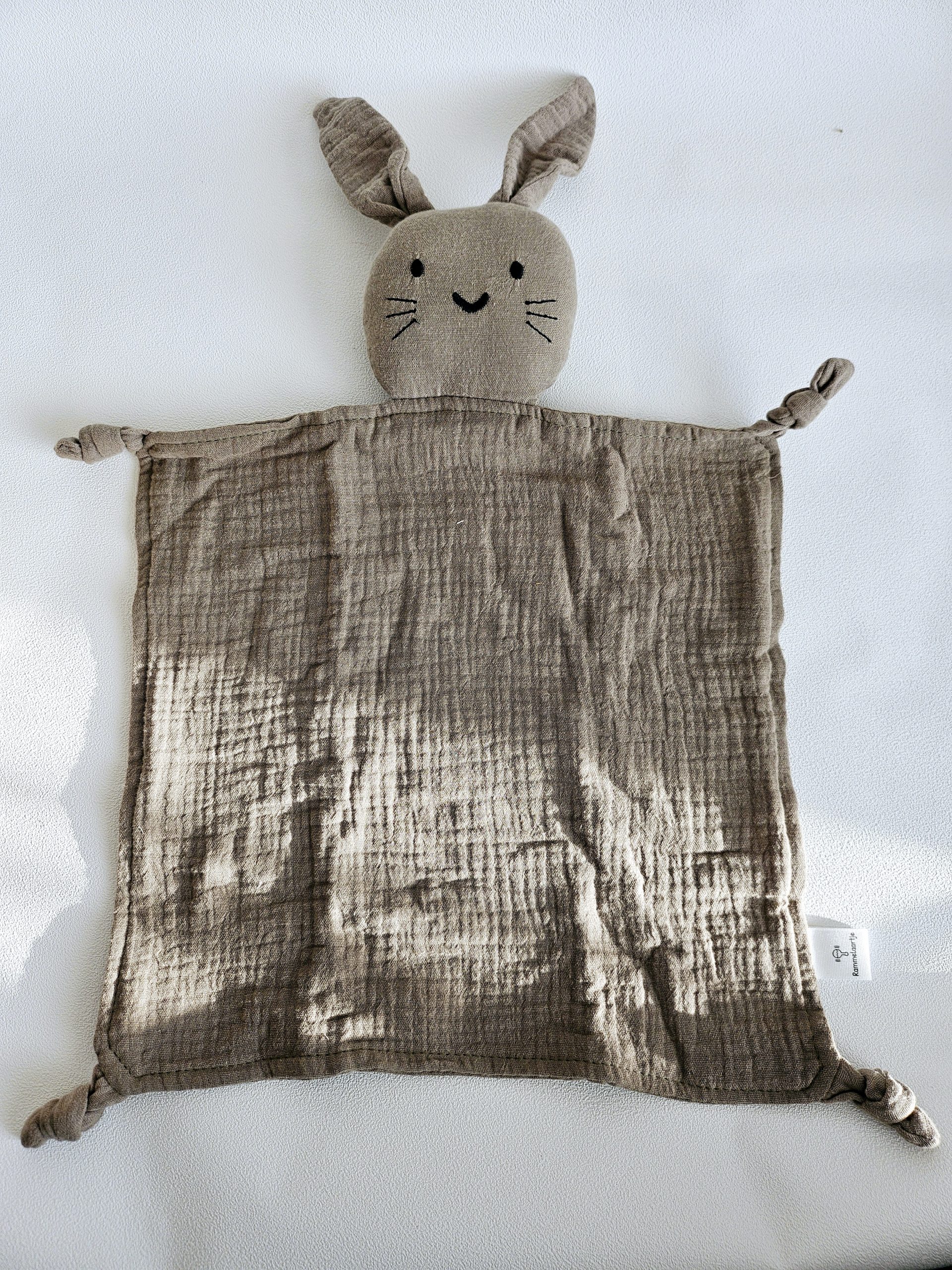 Le doudou-lange LAPIN est fabriqué en coton ultra-doux et absorbant, garantissant confort et douceur pour la peau fragile de bébé.