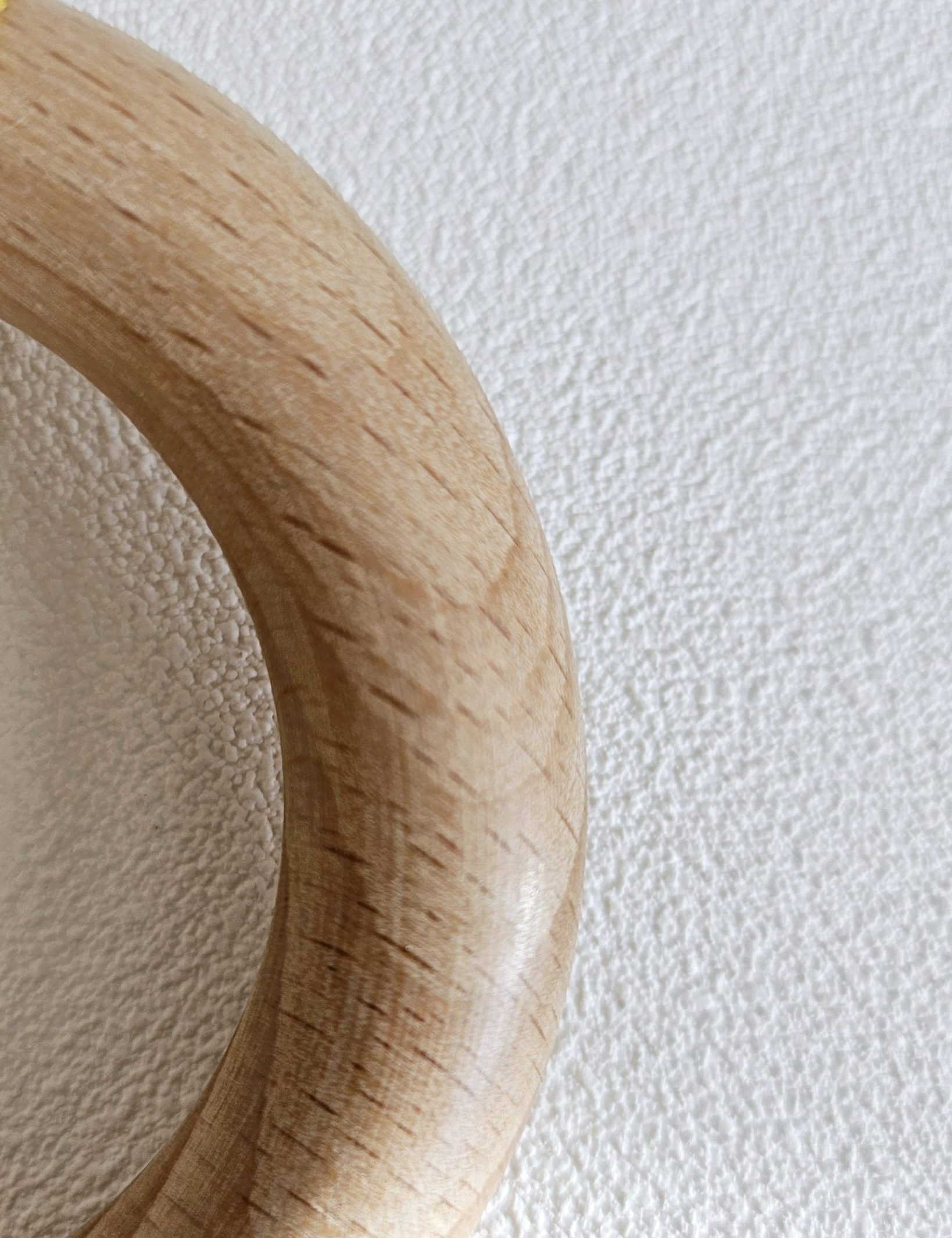 Avec son anneau en bois naturel, ce hochet stimule le sens du toucher et favorise la coordination motrice