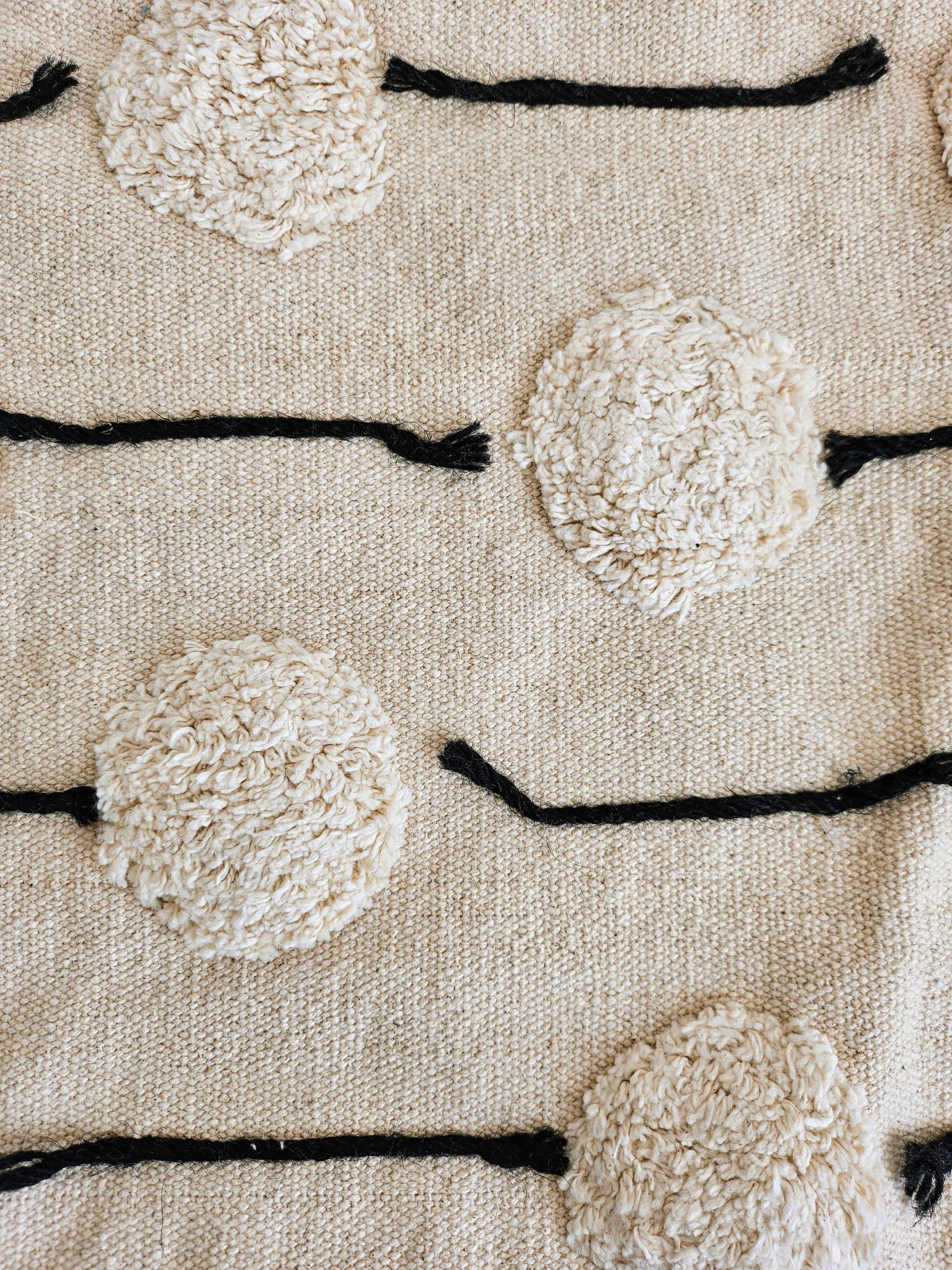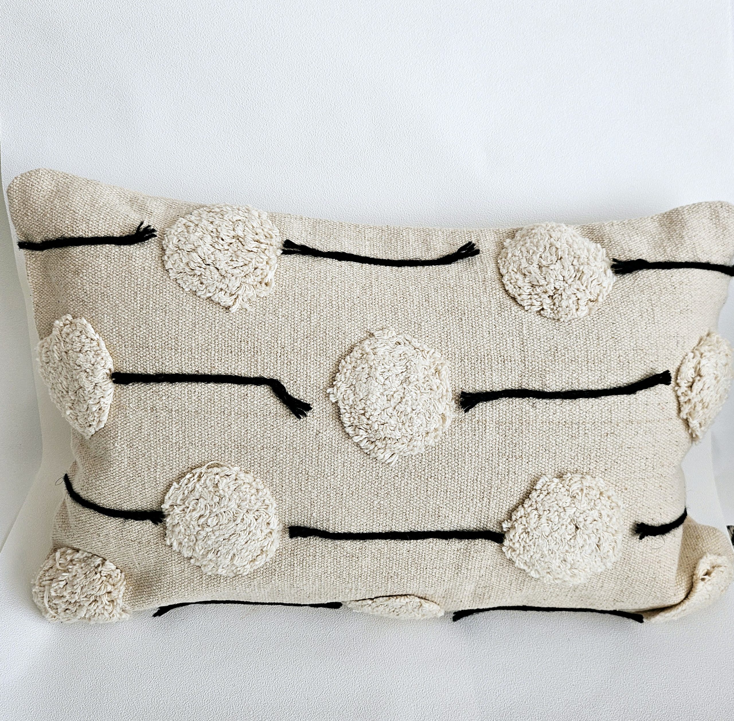 - Design : broderies tuftées en relief sur une face, dos uni écru